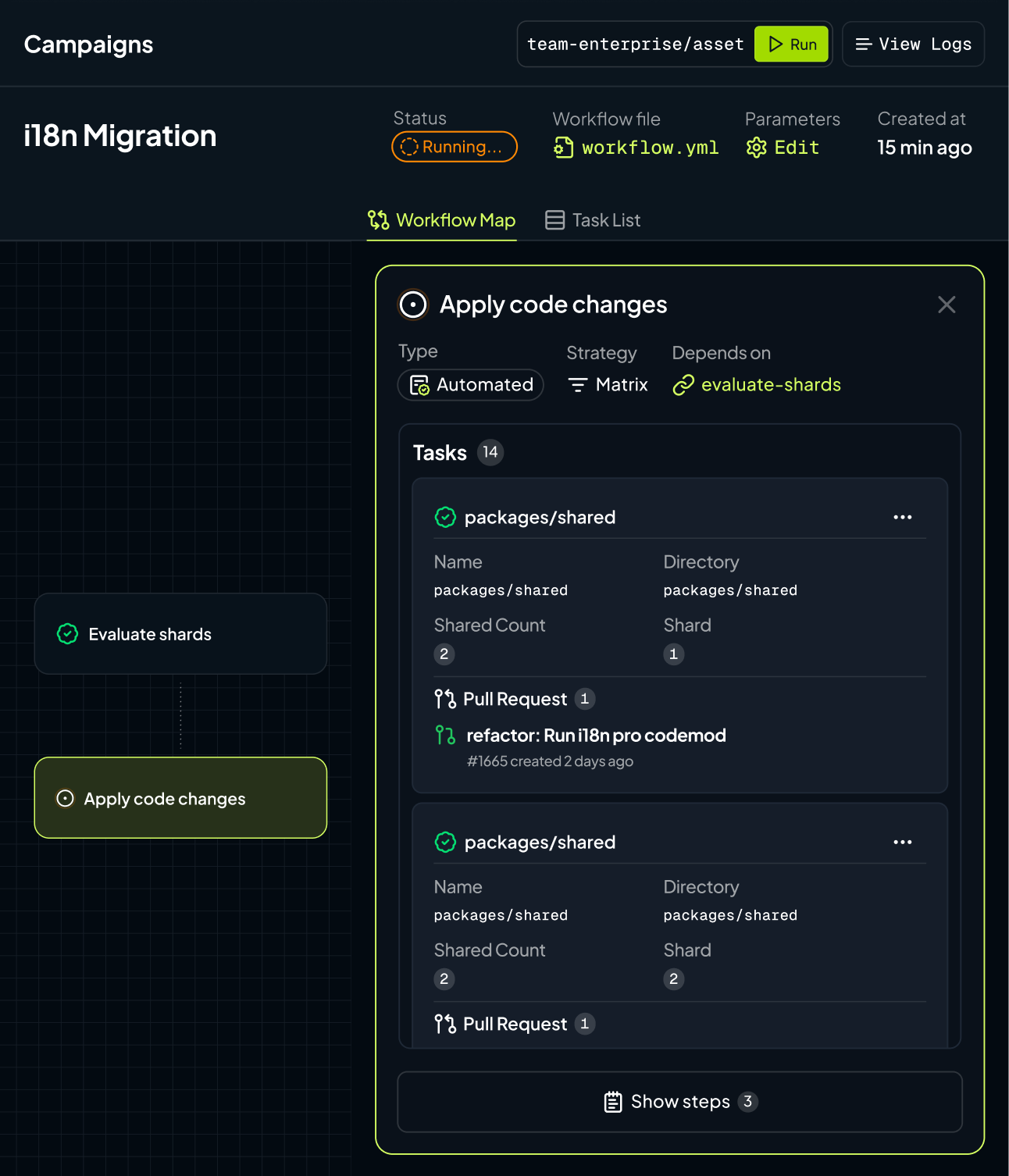Stop wasting time on string replacements. Let Codemod agents handle i18n code changes while coordinating the work across teams.